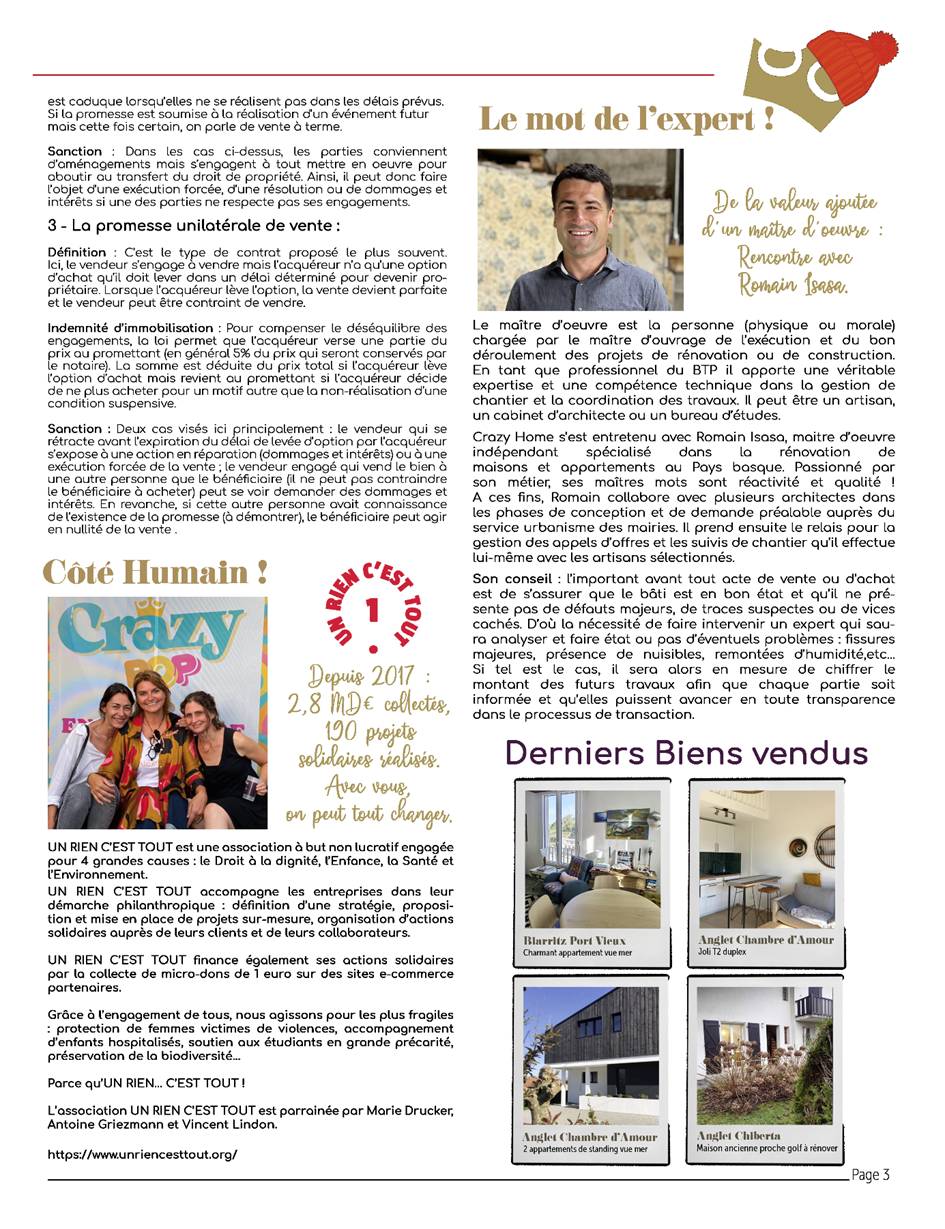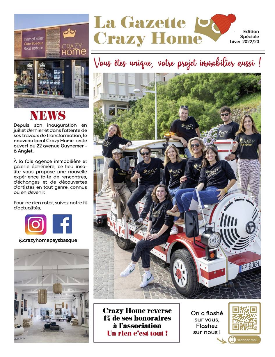 La voici, la voilà, l'édition hiver 2022/23 de la Gazette Crazy Home sort cette semaine ! De nouvelles informations utiles pour les vendeurs et acquéreurs, le mot d'un expert en maîtrise d'oeuvre et celui de notre partenaire Un Rien C'est Tout, une sélection de biens à la vente, un zoom sur ceux qui font vivre notre galerie éphémère, etc...