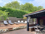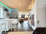 Au 1er étage d'une ancienne ferme ancrée dans un environnement classé et bucolique, appartement en duplex proposant un plain pied avec pièce de vie traversante, cuisine ouverte, un séjour lumineux vue sur la nature, une chambre/bureau avec coin sde et wc séparé. L'étage accueille une chambre et une grande sdb avec petit espace buanderie ainsi qu'un wc séparé. En jouissance privative, une belle terrasse avec plancha et un coin repas protégé. Place de stationnement attribuée ainsi qu'un grand local pour abriter les deux roues, planches de surf etc... Emplacement rare, cadre unique, à quelques centaines de mètres des plages d'Ilbarritz et de la Milady, du centre équestre et du lac Mouriscot.
