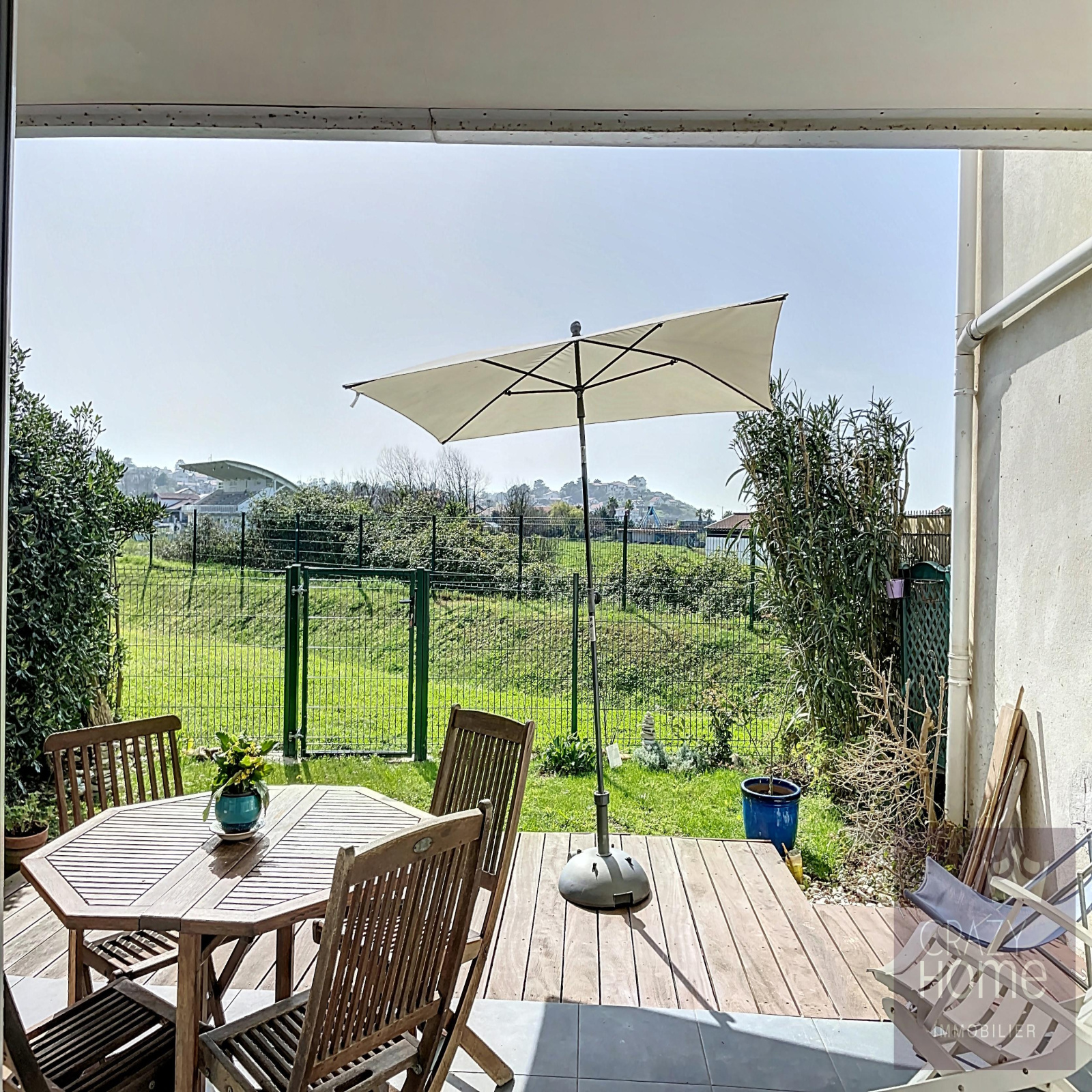 Bidart plage à pied.Idéalement situé à deux pas du Bourg et de ses commodités, agréable 3 pièces principales situé en rez-de-jardin d'une petite copropriété. Appartement composé d'une belle pièce de vie avec cuisine équipée ouvrant intégralement sur sa terrasse et son jardinet privatif, 2 chambres avec placard penderie, salle de bains, WC indépendant, cellier et parking extérieur. Etat impeccable et belle luminosité.Copropriété de 121 lots dont 40 lots principaux d'habitation. Charges annuelles courantes : 1.024 €. Pas de procédure en cours.Estimation des coûts annuels d'énergie du logement : entre 650 € et 930 € (prix moyen des énergies indexés au 1er janvier 2021)Les informations sur les risques auxquels ce bien est exposé sont disponibles sur le site Géorisques : www.georisques.gouv.frPrix honoraires agence inclus de 19.000 €, soit 5 % du prix net vendeur de 380.000 € à la charge de l'acquéreur.Contact : Thierry Chalopin - Tél. 06.68.45.45.91 / thierry.chalopin@crazyhome.fr - Agent commercial n° RSAC 443 384 581